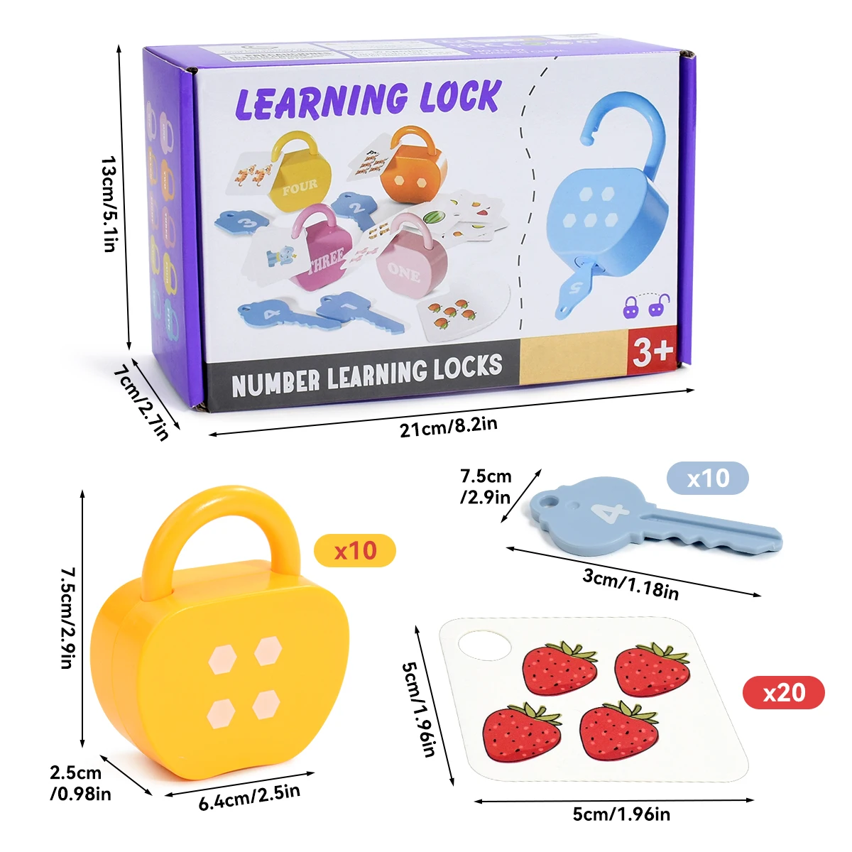 10 Set Apple Locks Keys Cards Matching Toys Kids Educational Learning Matching Counting Homeschool Math Toy for 3+ Child